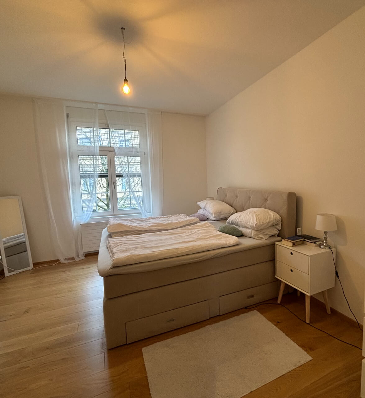Die Wohnung ist sonnig gelegen und bietet trotz der zentralen Lage ruhige Nächte. Die Nähe zum Rhein und die gute Anbindung an den öffentlichen Verkehr machen diese Immobilie besonders attraktiv für Familien und Berufspendler.